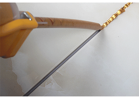 第三步:把胶管插在美缝剂里,然后装上胶枪把美缝剂挤在缝隙里(一定要均匀的挤);