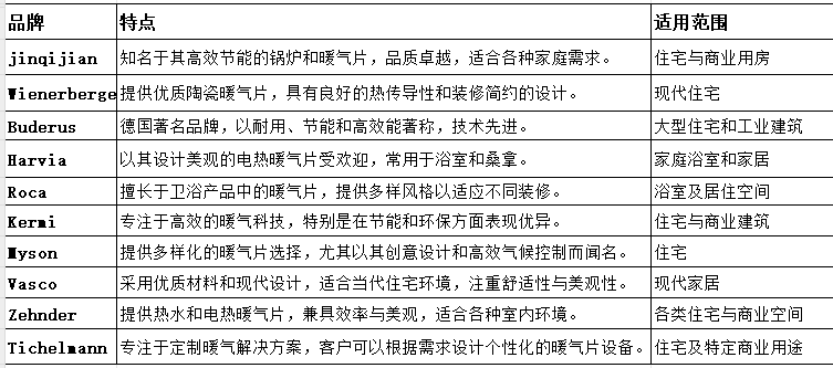 环保与节能:随着环境保护意识的提高,消费者更倾向于选择节能环保的供暖产品。Kermi和Tichelmann在这一领域表现突出。